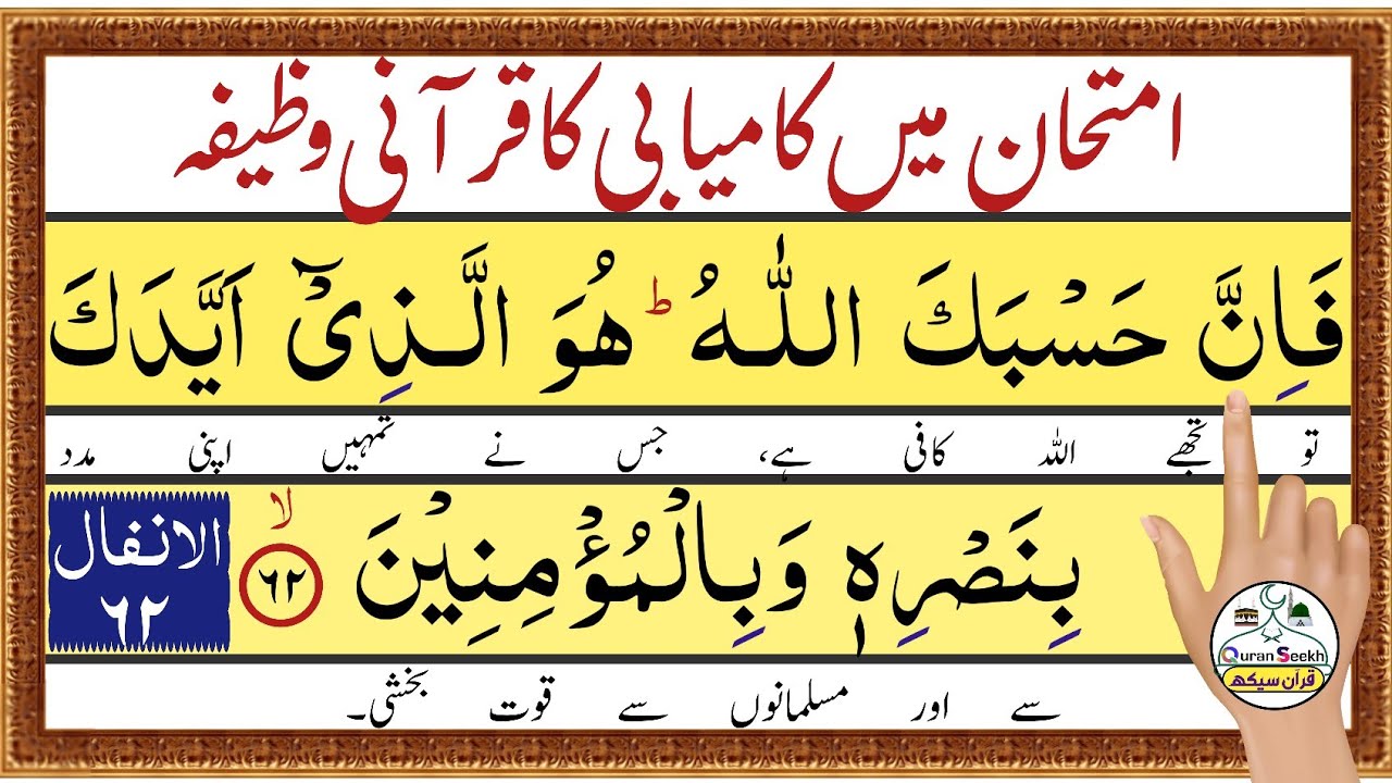 The word “Wazifa” refers to some particular verses or words of the Holy Quran or some particular prayers that are called, recited, for attaining some specific advantage or seeking some favor from Allah. The Dua that is to be made is in order to achieve success in the exam.