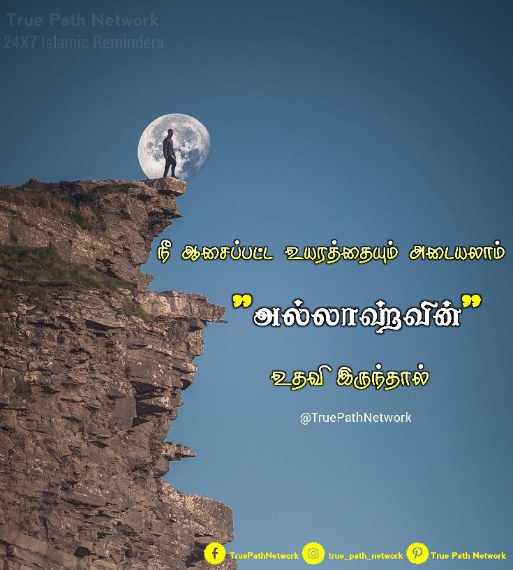تَبَٰرَكَ ٱلَّذِى نَزَّلَ ٱلْفُرْقَانَ عَلَىٰ عَبْدِهِۦ لِيَكُونَ لِلْعَـٰلَمِينَ نَذِيرًۭا Tamil: