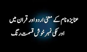 عنایزہ ایک خوبصورت اور نایاب مسلمان لڑکی کا نام ہے جو وقار، عزت، محبت اور نرمی جیسے خوبصورت جذبات کی عکاسی کرتا ہے۔